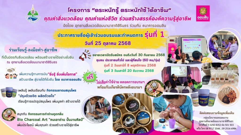 ในวันและเวลาราชการ ณ ศูนย์พลังงานเพื่อสิ่งแวดล้อม อุทยานสิ่งแวดล้อมนานาชาติสิรินธร เลขที่ ๑๒๘๑